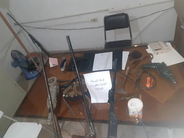 وأفاد مصدر امني على إثر توفر معلومات مفادها تعمّد أحد الأشخاص (عمره 57 سنة قاطن بجهة عين الكدية) إستغلال مستودع بمنزله لصنع وتركيب أسلحة ذات صنع تقليدي.